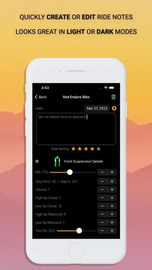 Keep track of all your bikes and your suspension settings!