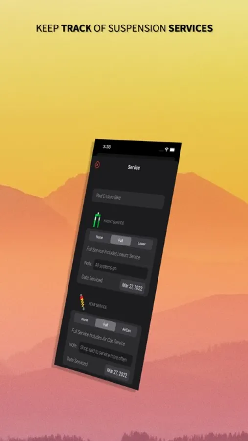 - Add and update services to keep track of your suspension