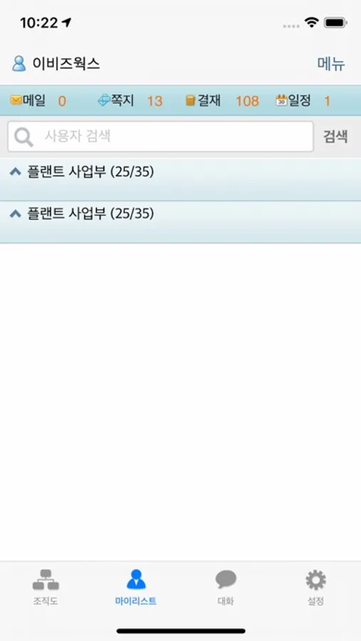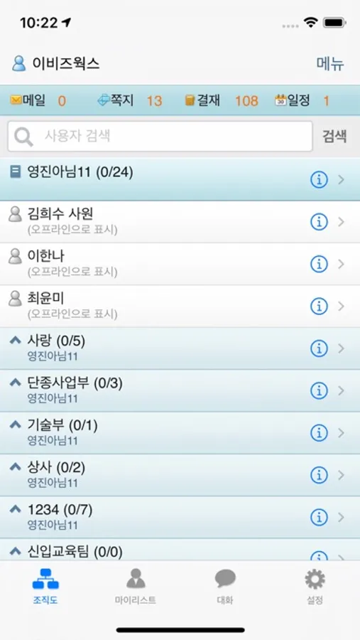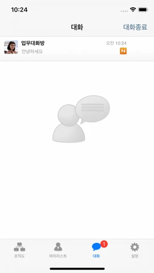 -조직도 기반의 기업용 메신저로 PC 버전 메신저와 완벽하게 통합되어 있습니다.