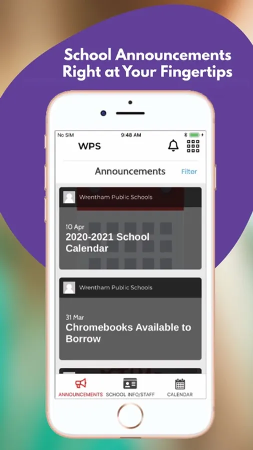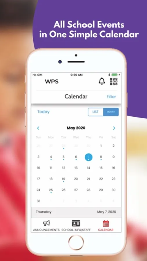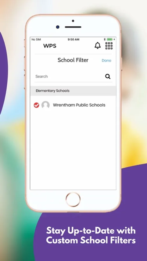 The app includes information for the district and all schools. Filter by the school your child attends to feature information for that school.