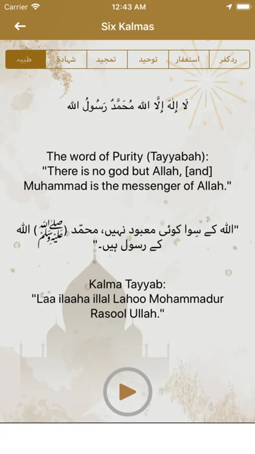 6 Kalamas of Islam are also a part of this app. Six Kalams are with Urdu and English Translations as well as with Audio.