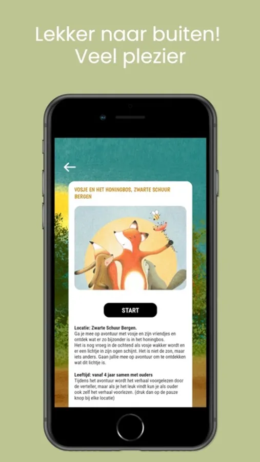 De locatie gebaseerde GPS stories in de app veranderen de locatie elke keer weer in een nieuwe avonturenwereld waar kinderen met ouders urenlang en over meerdere dagen verspreid het nieuwe buiten spelen ontdekken.