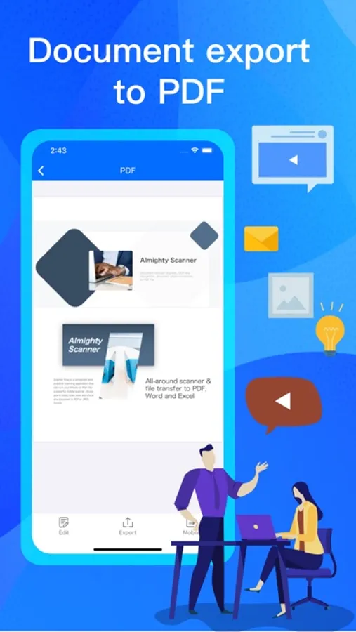 PowerScanner is a convenient and practical scanning APP that can turn your iPhone or iPad into a powerful mobile scanner. Lets you easily scan, save and share any document in PDF or JPEG format.