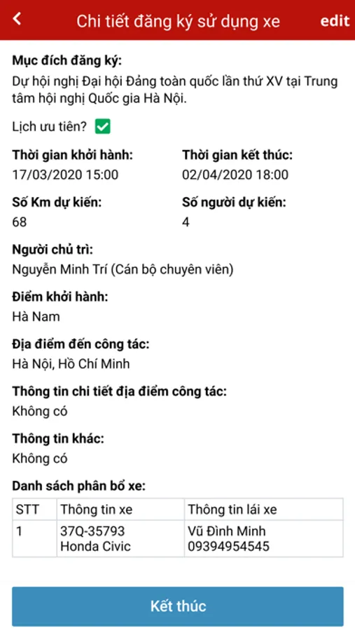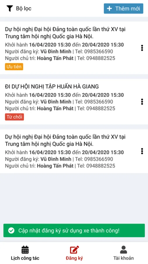 - Duyệt/ Từ chối đăng ký sử dụng xe