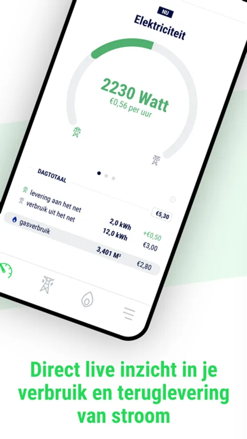 Met de EARN-E app zie je live wat je verbruikt aan elektriciteit en gas en wat je teruglevert aan het stroomnet als je zonnepanelen hebt.