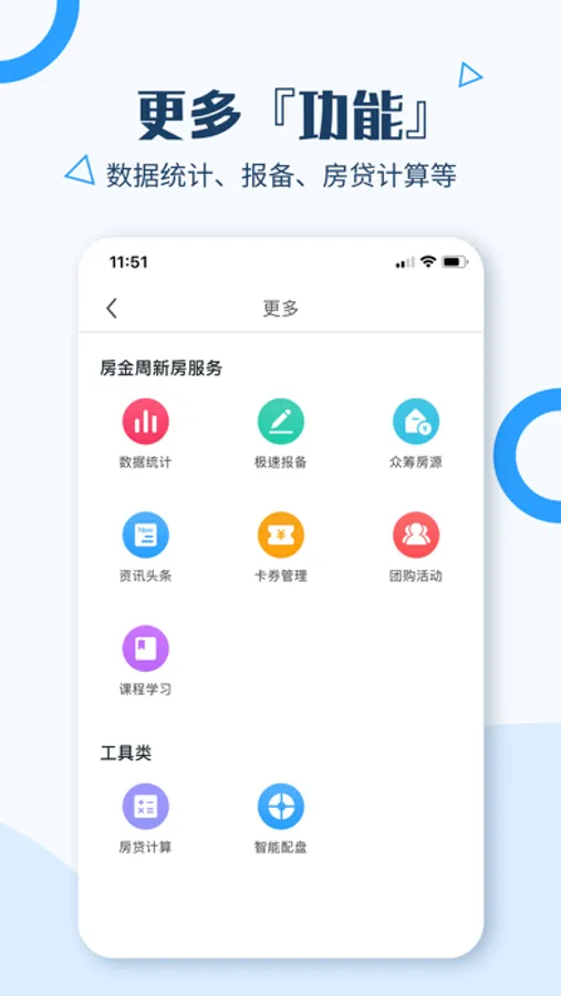 房金周新房已集成经纪人报备,带看,成交,转介,众筹,联动,新闻,呼车,悬赏等功能,为经纪人提供完善的业务服务。