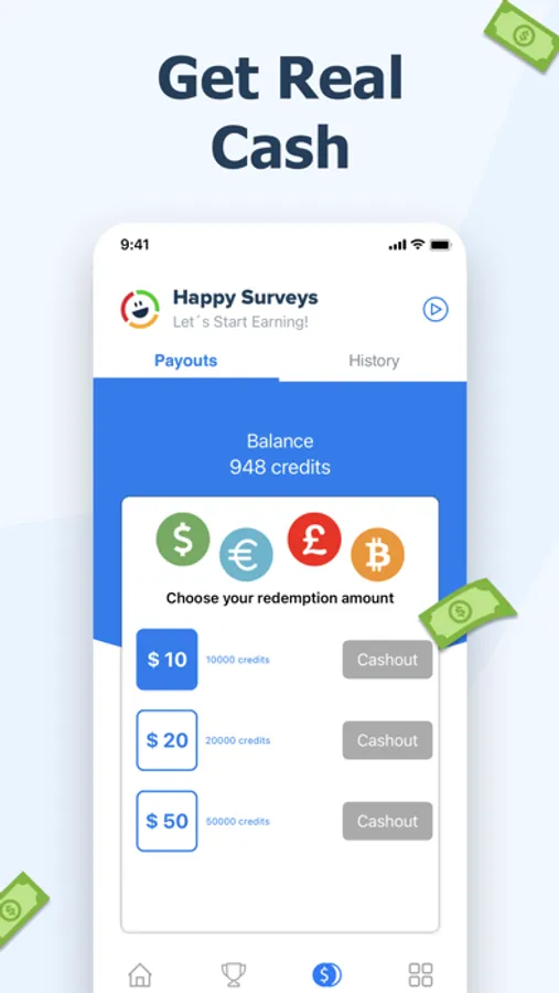 Your mobile mini-job is not only easy but also fun, make money with surveys now. Real cash is waiting for you! Be smart and earn money with a survey! Happy Surveys is leading the way for survey apps that pay cash.