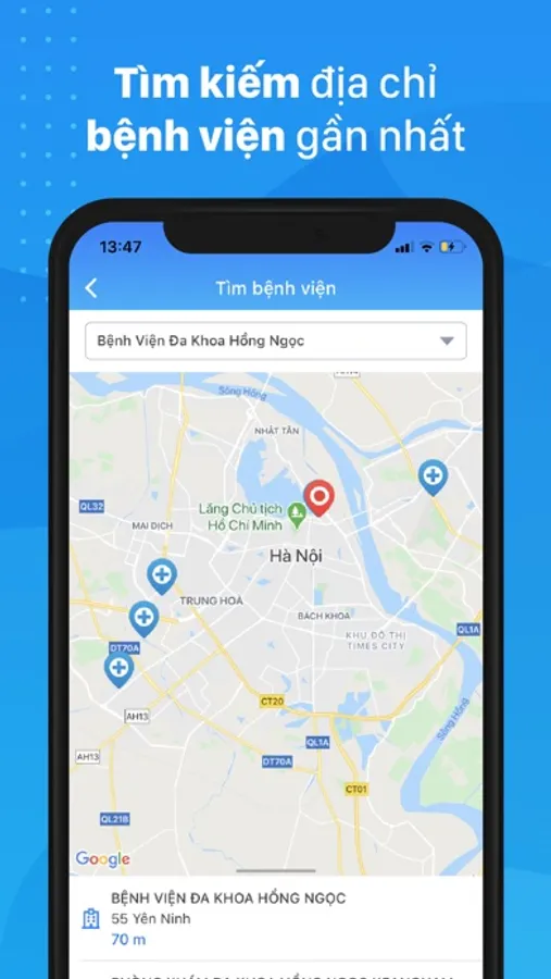 Thay vì phải mất nhiều thời gian để tra cứu, tìm kiếm, bạn chỉ cần một thao tác để tìm ra địa chỉ gần nhất của hệ thống Bệnh viện Hồng Ngọc bao gồm thông tin địa điểm, vị trí hiển thị trên bản đồ, thông tin liên hệ.