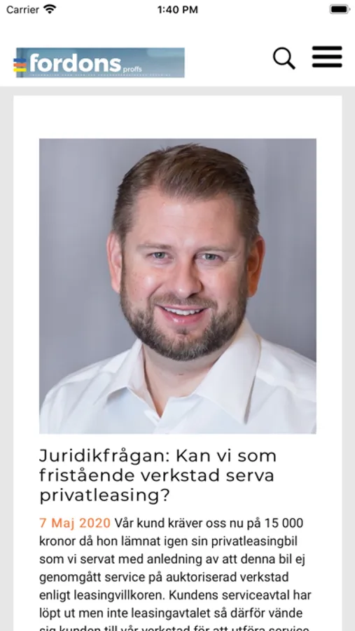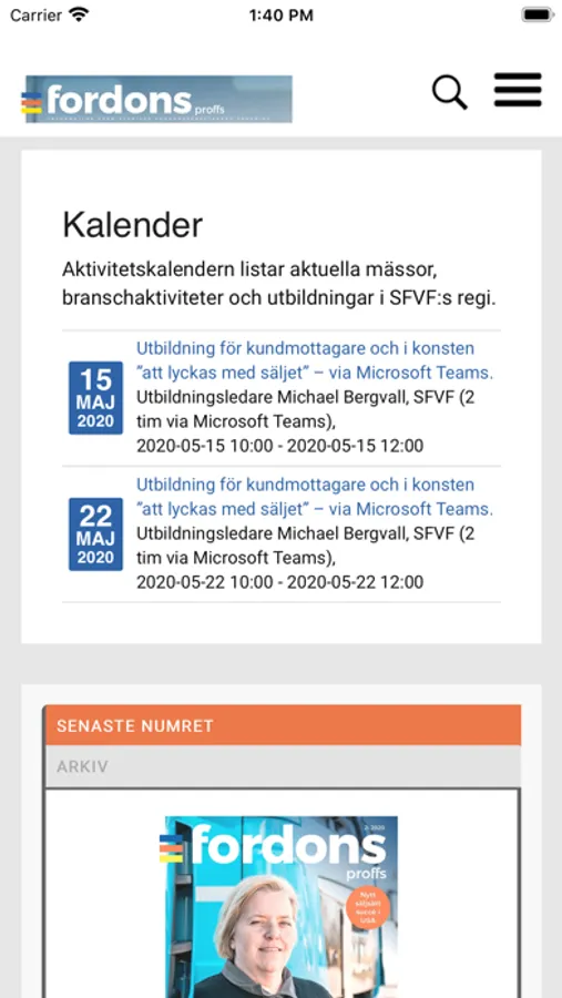 Fordonsproffs, en app från Sveriges Fordonsverkstäders Förening (SFVF). Nyheter och senaste nytt inom fordonsbranschen.