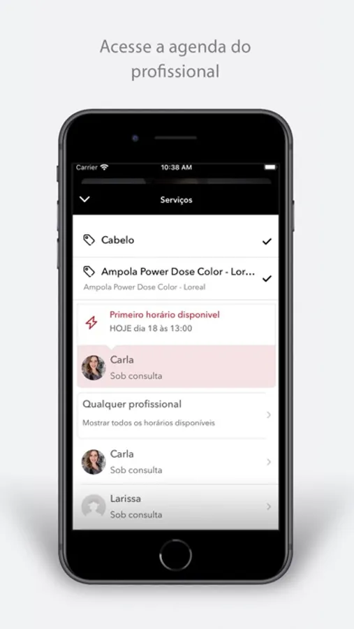 ► Marque horário com seu profissional favorito quando quiser, mesmo que você esteja no trabalho ou fora do horário comercial.