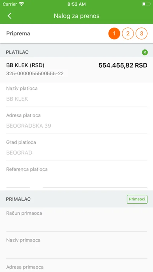 • kreiranje šablona naloga za prenose ili plaćanja,