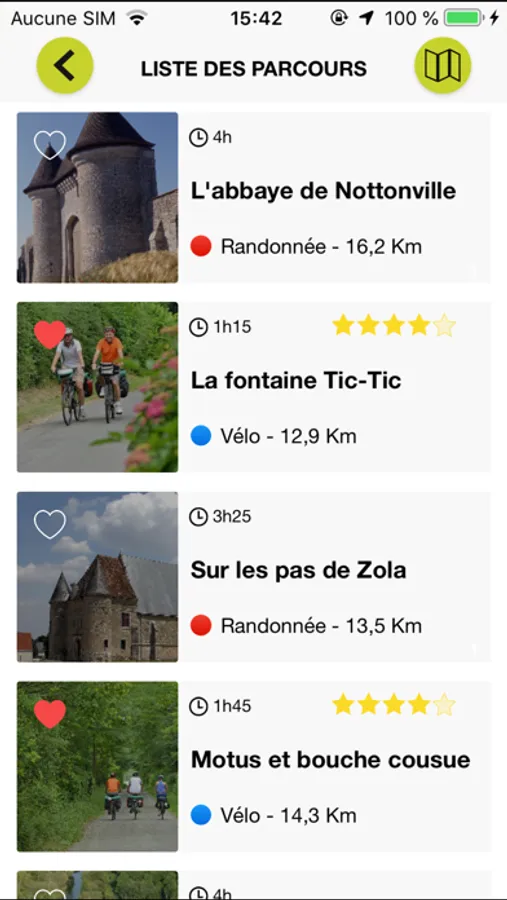 • un choix d’itinéraires selon des critères simples : géolocalisation, durée, niveau de difficulté