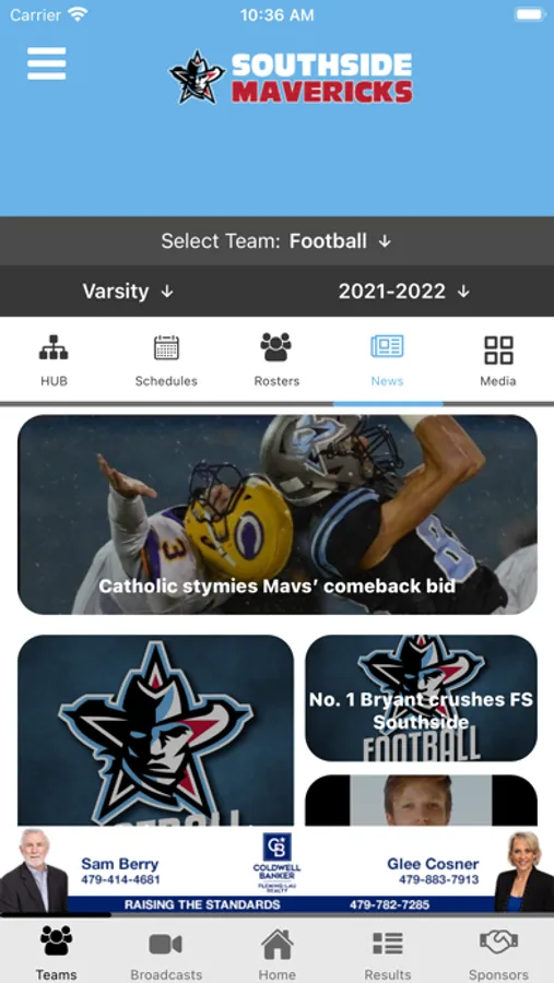 - Active Home Screen Dashboard: Upcoming Games and Recent News.