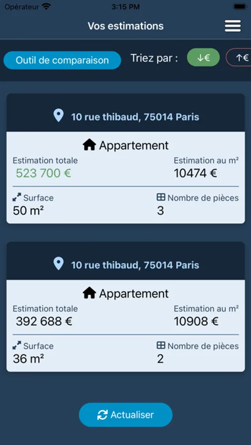Avec l'application Estimation Immo by acheter-louer.fr, découvrez la valeur de votre bien immobilier, ainsi que le prix de toutes les ventes réalisées au cours des 5 dernières années.