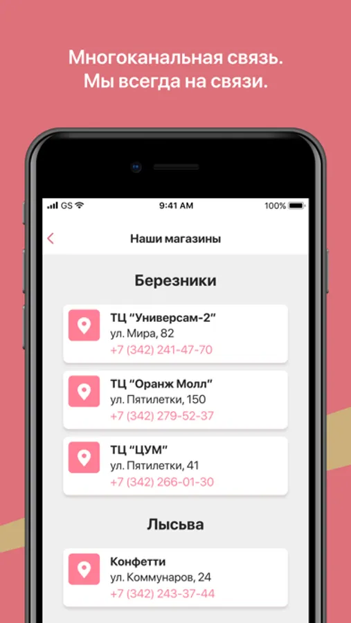 Адреса и отметки на карте всех магазинов