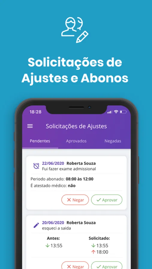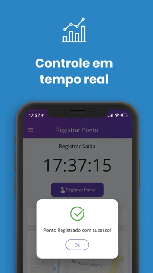 Os colaboradores marcam ponto no aplicativo ou na web, você acompanha em tempo real as ocorrências do ponto.