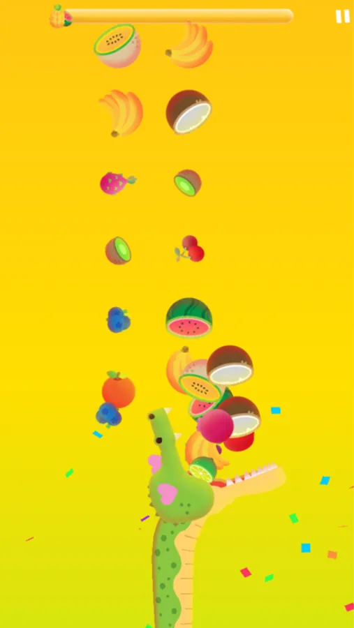 Collect a huge pile of food in the snake-imal’s mouth and munch it all at once. Enjoy the shower of juicy fruit splatters!