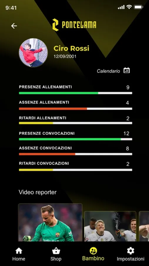 • Visionare la presenza o l’assenza di tuo figlio agli allenamenti;