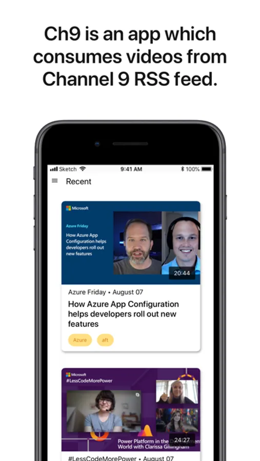 Ch9 is an app for consuming videos from publicly-available Channel 9 RSS feed.