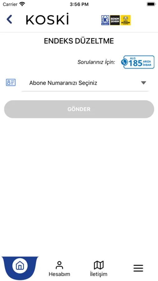 • Endeks Düzeltme: Tahmini okumalarda, abonelerimiz sayaç üzerimdeki güncel endeksi girerek faturalarında düzelte işlemini yapabilmektedir.
