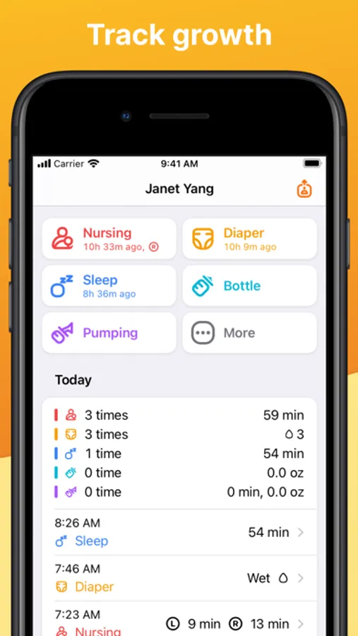 + Track baby activities: Log a variety of baby activities such as nursing, diaper, sleeping, bottle, pumping, and solid.