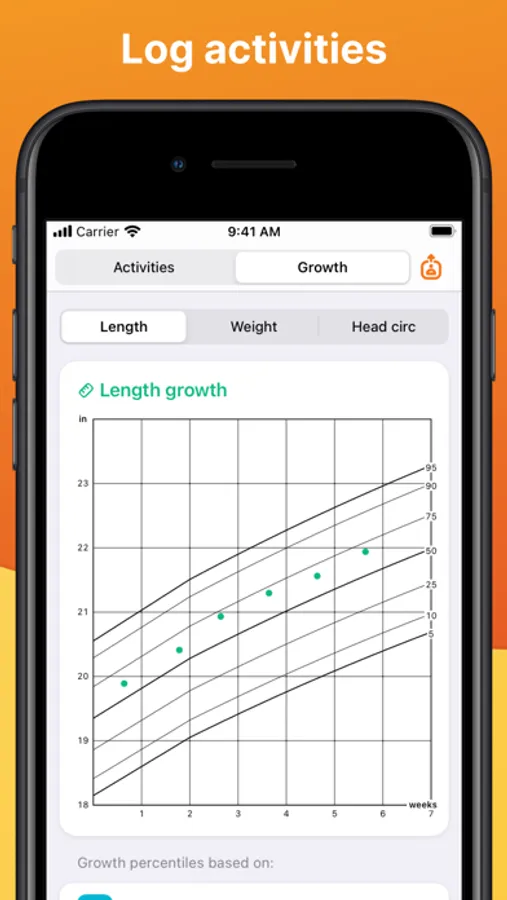 + Monitor baby growth: Log baby’s weight, length, and head circumference, and view their growth percentile over time.