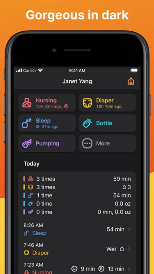 + Multiple profiles: Log activities with multiple baby profiles, ideal for families with more than one child.