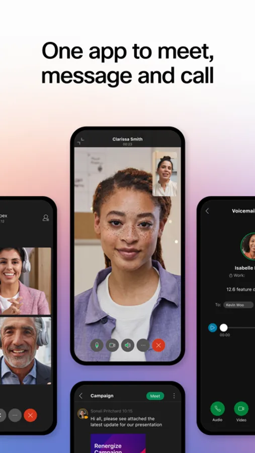 Cisco Webex is an app for continuous teamwork. Move work forward in secure work spaces where everyone can contribute anytime with messaging, file sharing, white boarding, video meetings, calling, and more. It works on virtually any device, with these top benefits for mobile app users: