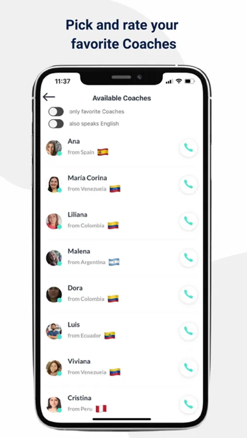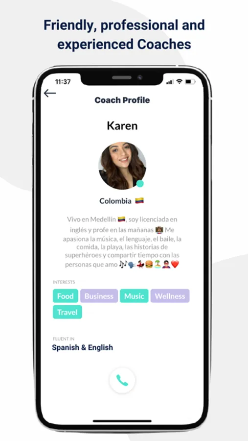 Students have instant access to one-on-one interpersonal practice with handpicked Spanish Coaches at any time – from anywhere – through the app. Our Coaches are always excited to talk to you :)