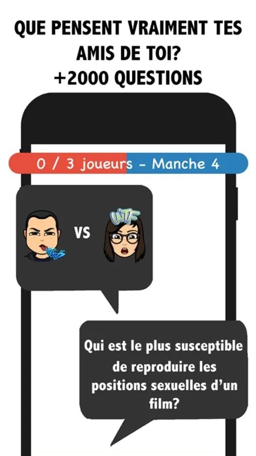 Un jeu parfait pour vos Whatsappero ou pour relancer une soirée et découvrir ce que tes amis pensent vraiment de toi!