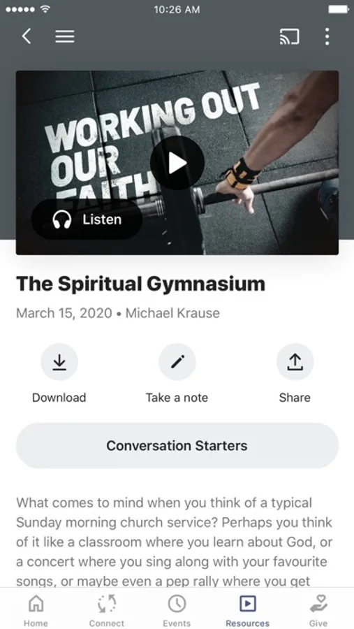 Media can be downloaded for offline viewing. This includes messages and the podcast! Media can also be air-played to local devices.