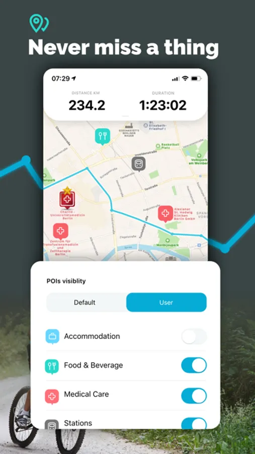Not only experienced Route Cyclists but also families and aged persons should feel additional comfort and safety with on-demand-icons for POI’s en route.
