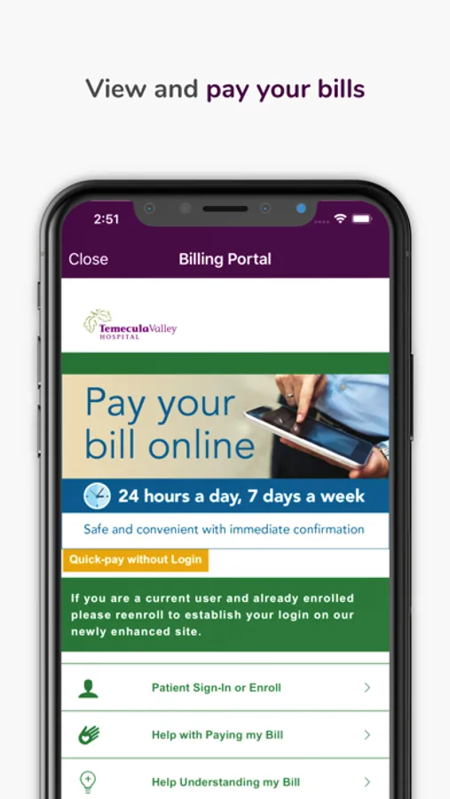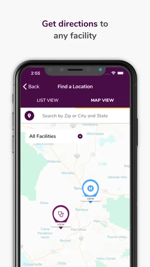 The SWHS app gives you the location and directions to the nearest Southwest Health System facilities based on the type of care you need. It also allows you to search providers, view ER wait times, schedule an appointment, view health records, pay your bills, and find nearby amenities like restaurants, gift shops and florists.