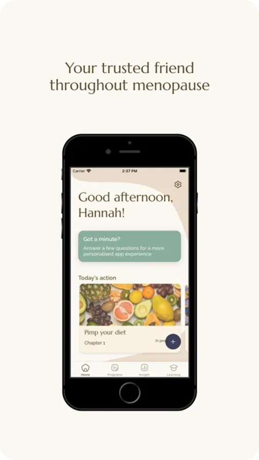 Olivia is a digital tool for women going through menopause. Whether things are just getting started, or you’re deep in the perimenopause whirlwind, Olivia is your trusted friend from start to finish. We offer expert guidance to help you through the ups and downs, as well as everything in between.