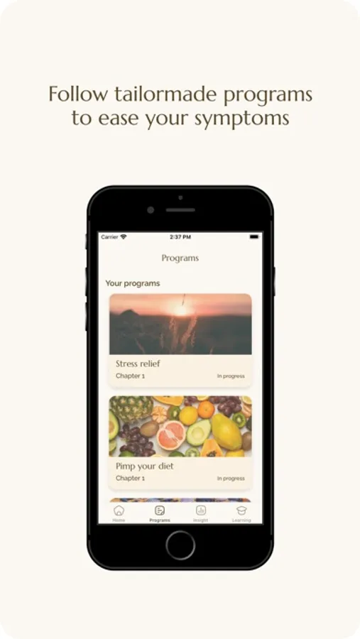 Tailormade programs offering guidance on stress relief, better sleep quality, self-confidence and how to get better support from loved ones during this phase in your life. These programs are created with experts and are based on cognitive behavioural therapy methods.