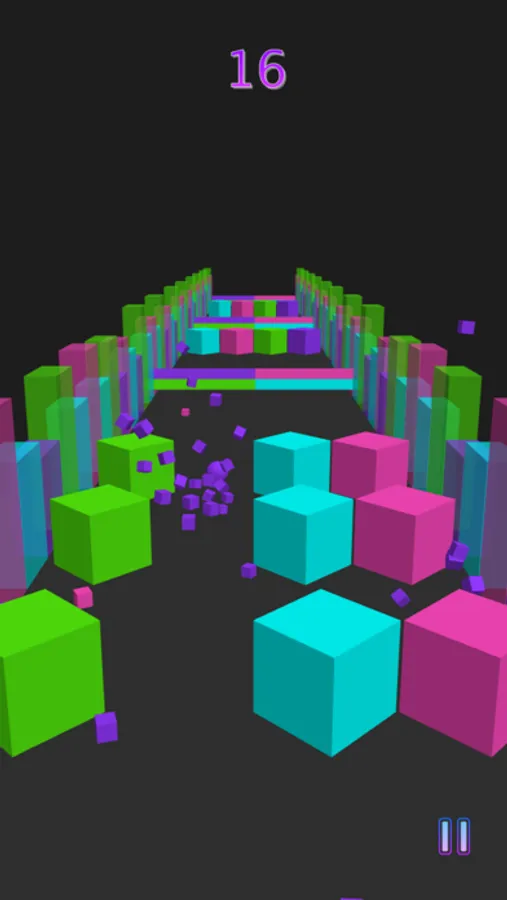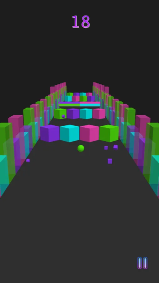 Slide your finger left and right to control the ball and collide with the cubes of the corresponding color according to the color of your ball. By colliding with the correct cube you will get 1 point.