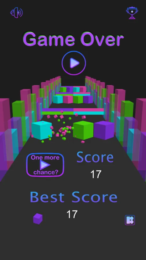 If you collide with the cube that does not correspond to the color of your ball, you will lose. And be careful with hitting the walls because it will also make you lose.