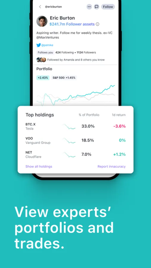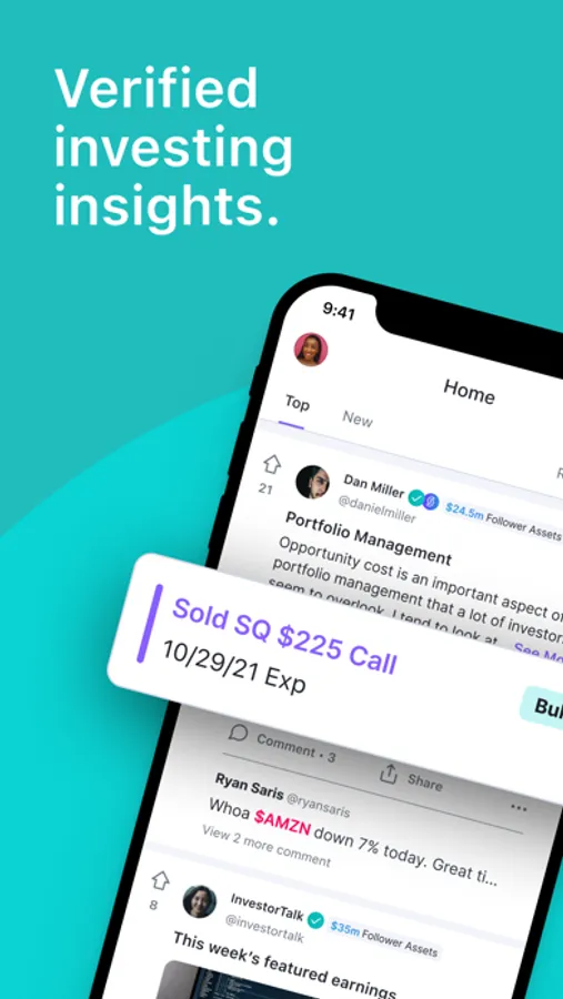 • Verified Performance - Find and follow top investors to see their linked portfolios, historical performance, and trades. Choose to connect and share your own.