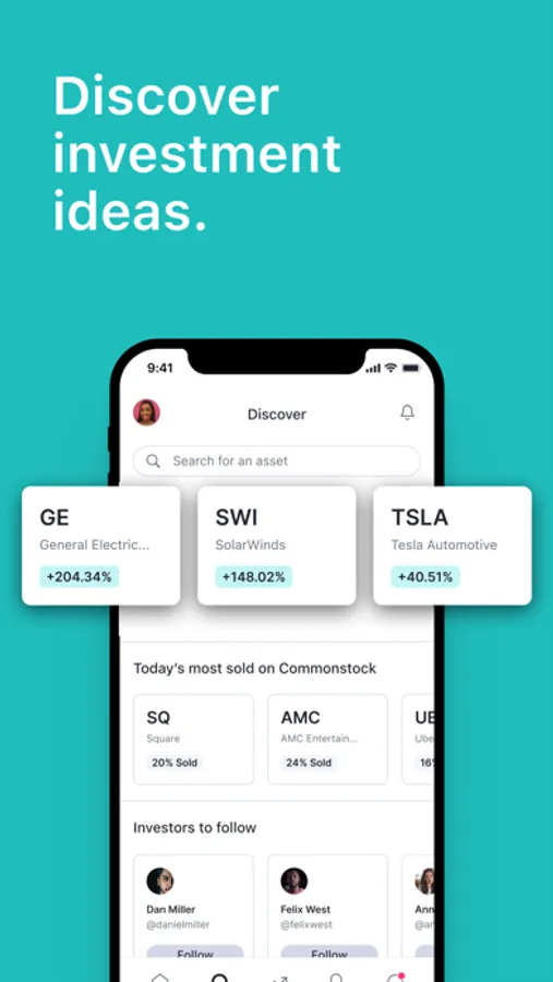 Join Commonstock's social investing platform to discover new investment ideas, view experts' portfolios and trades, share your performance with friends, and buy and sell stocks, ETFs and crypto — all without having to transfer your assets.