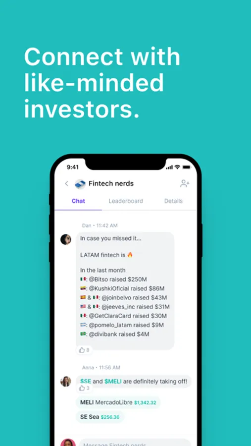 • Community - Join interest groups, create private channels with friends, and chat 1:1 with experts about investment ideas and strategies.