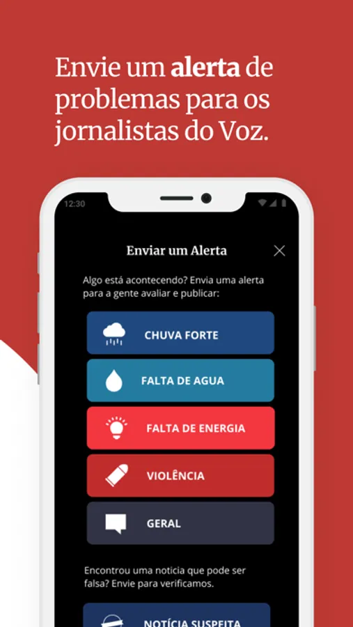 Com esse aplicativo, agora você tem uma linha direta de comunicação com a equipe editorial do Voz, que está à disposição para receber suas dicas e alertas, seja sobre notícias falsas, chuva forte, violência armada ou qualquer outro assunto urgente.