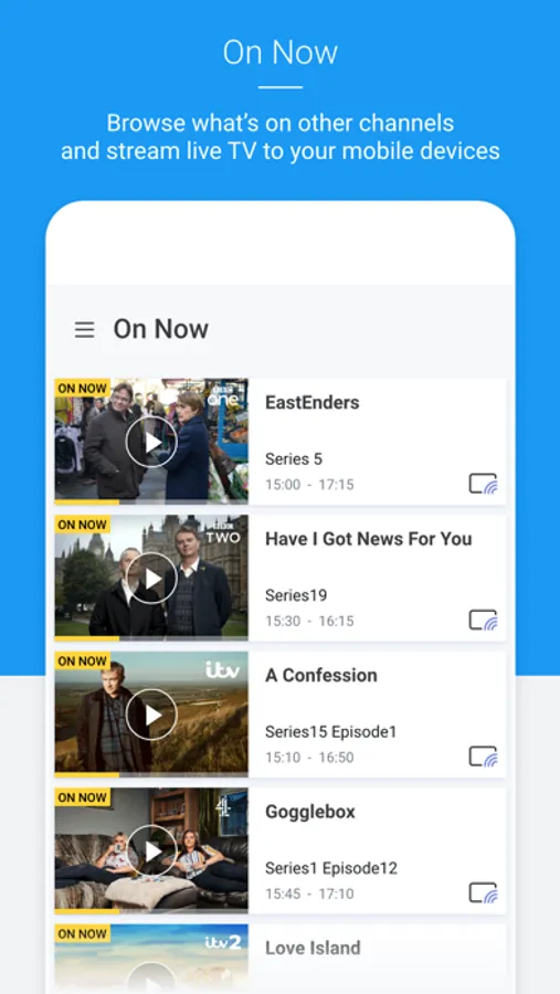 • Stream live TV straight to your smart device