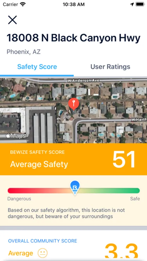 BeWize accurately displays the safety of any area in the USA. Use BeWize when you’re planning a vacation, meeting a friend for coffee or simply getting off the freeway to grab gas. You can also help keep others safe by leaving your own ratings.