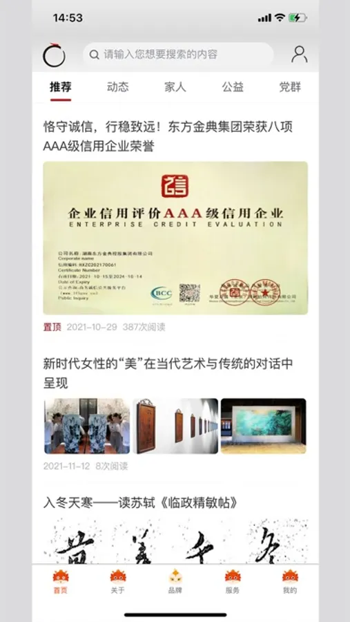 东方金典集团app,用于展示公司信息,公司介绍、新闻,动态,员工登录等。