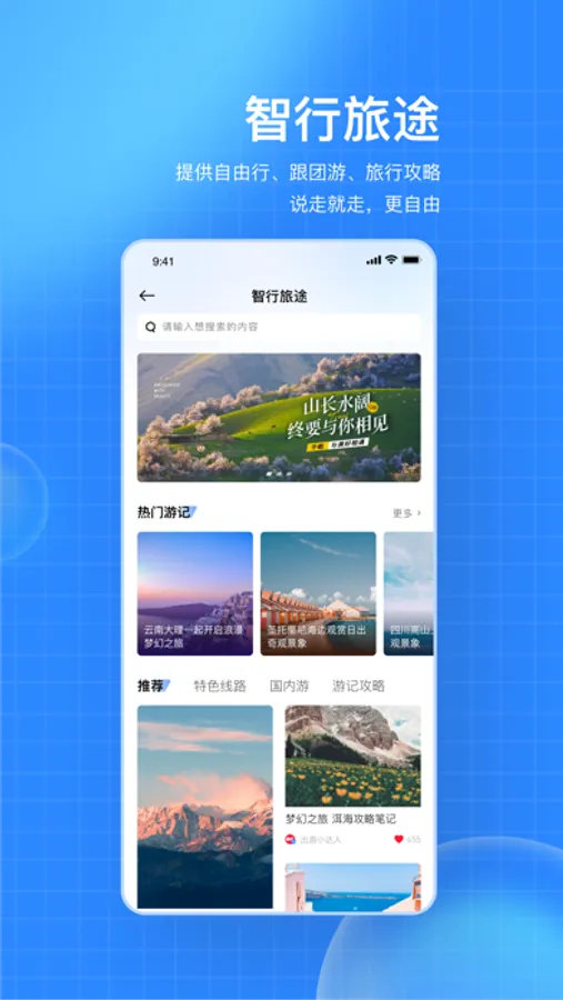 整合全国旅游资源,将传统旅游方式与互联网深度融合,实现业态标准化管理,提供给旅客更便捷、多样、高性价比的旅途服务,实现旅游元素碎片整合。