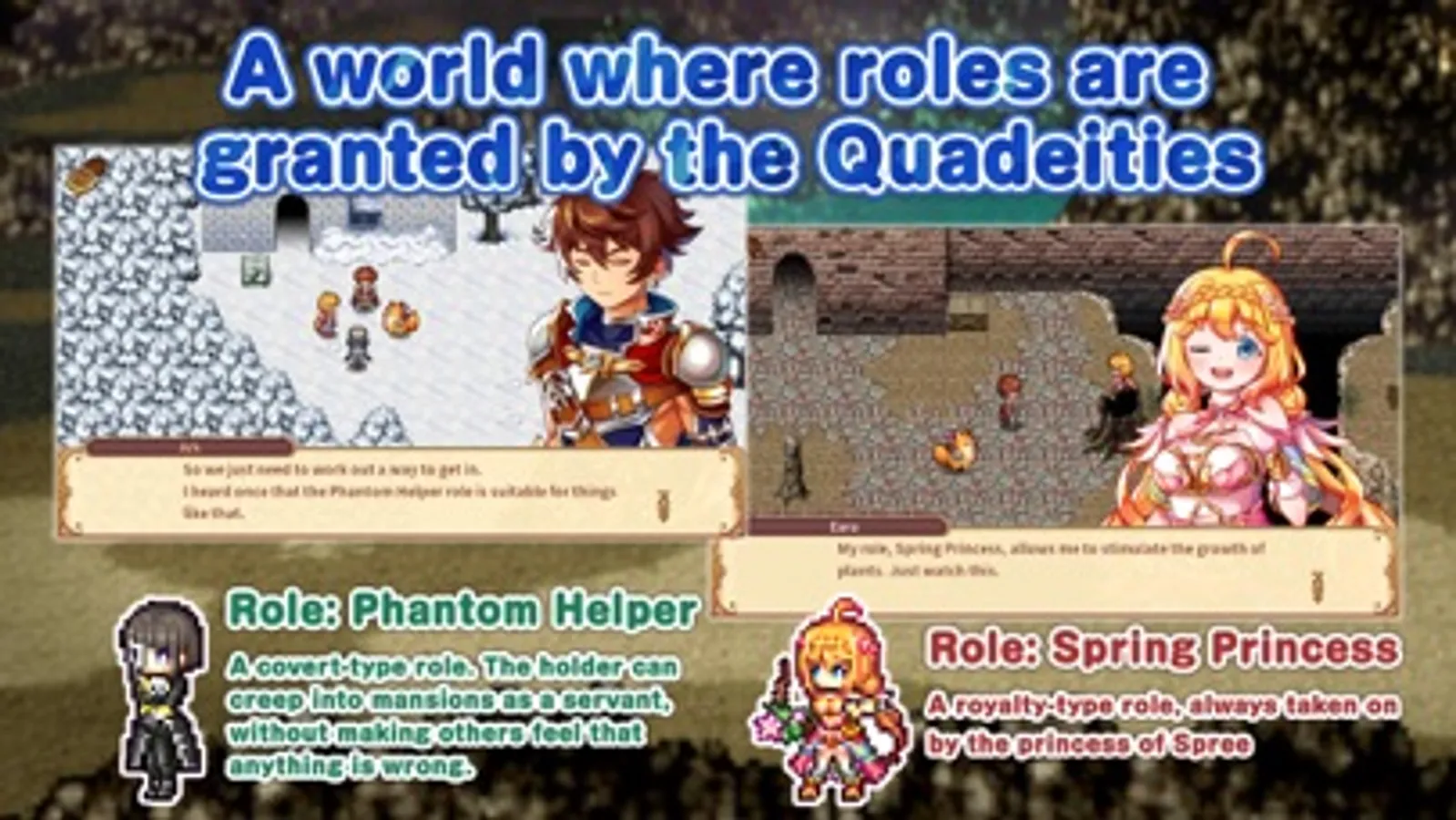 In a world with four kingdoms, each colored by a season, where roles are granted by the Quadeities, strange happenings suddenly threaten the peace there. A quest begins to find each one's calling in this intrigued fate and journey through the kingdoms to get to the bottom of the mystery!