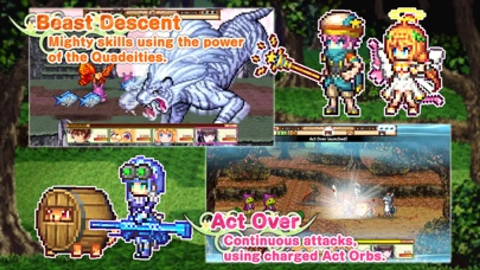 Make use of up to three roles per character to enjoy the variety in skills, effects and even costumes. In turn-based battles you can charge special orbs to use Act Over and launch up to four continuous actions. It's fun just to watch the charm of pixel arts in this fantasy JRPG!