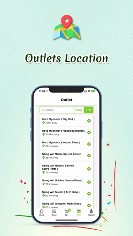 • Manifest the brand outlets nearby on google map just one click for “Outlet” Tab.