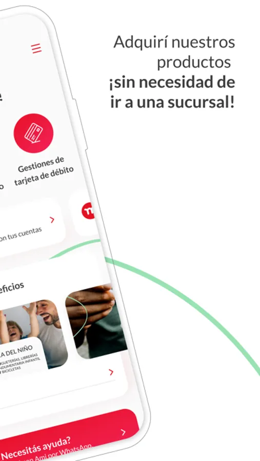 También podés buscar tus cajeros y sucursales más cercanos, consultar números útiles y chatear con nuestra asistente virtual.