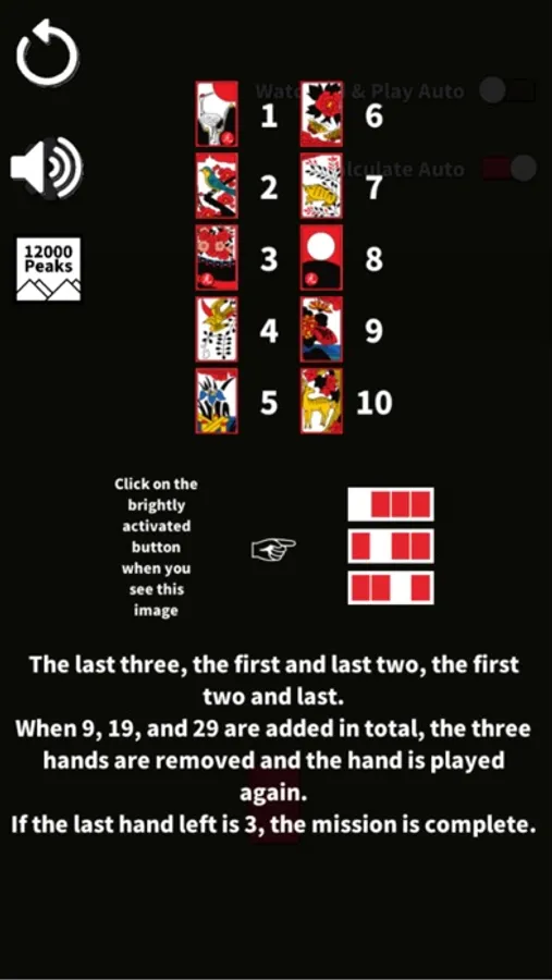 When 9, 19, and 29 are added in total, the three hands are removed and the hand is played again.